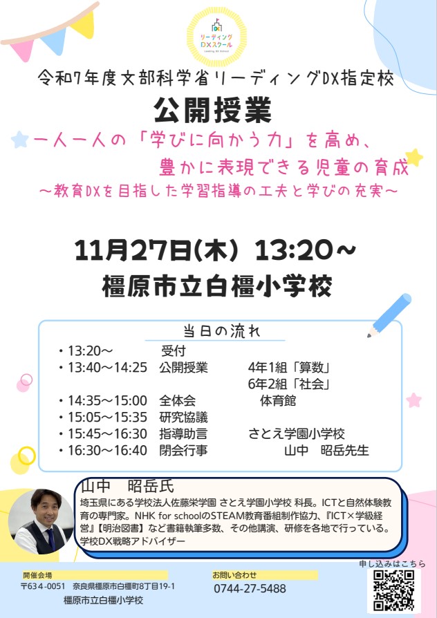 | 主催者 | 橿原市立白橿小学校 リーディングDX公開授業 |