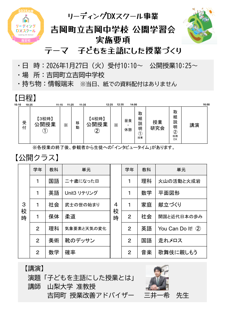 なお、当日の時間や授業内容等の詳細情報は〈🔵【吉岡中】2025LDX公開学習会_当日詳細情報シート〉に順次掲載していきます。