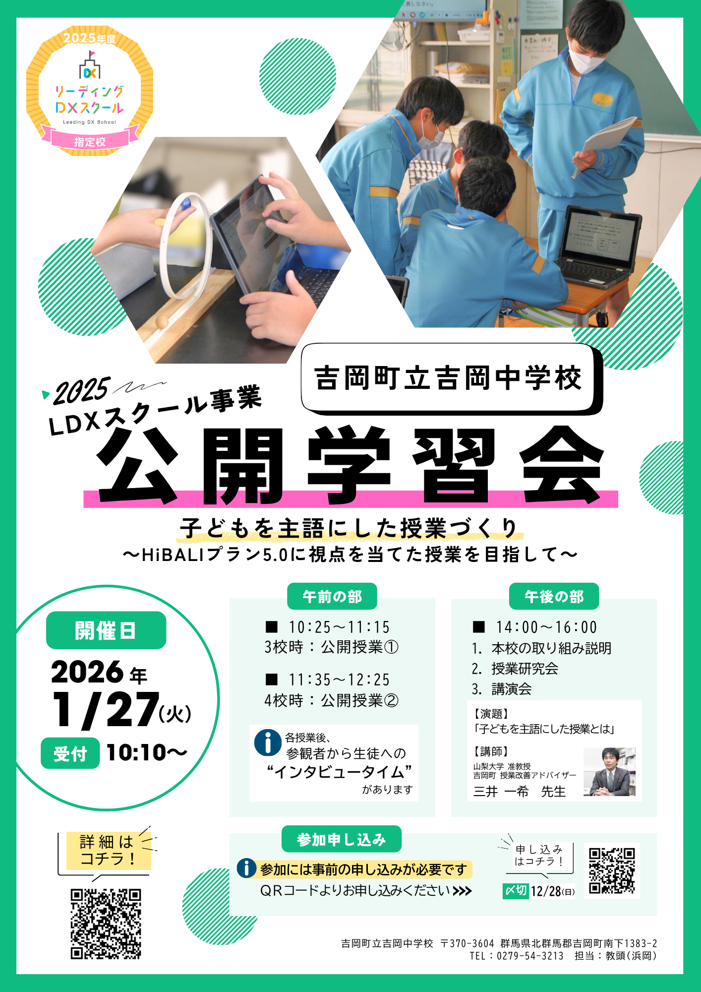 なお、当日の時間や授業内容等の詳細情報は〈🔵【吉岡中】2025LDX公開学習会_当日詳細情報シート〉に順次掲載していきます。