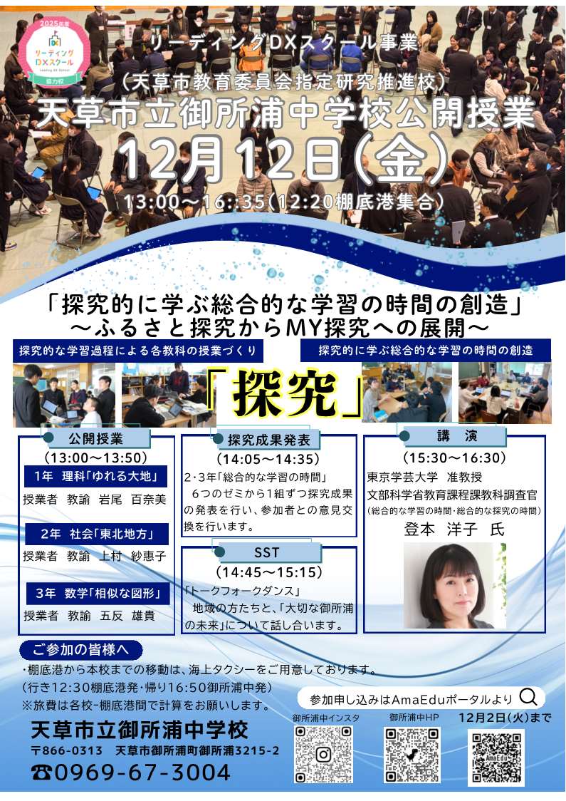 3. 熊本県天草市公開授業(12/12御所浦中学校)のご案内[講師:東京学芸大学 登本洋子 准教授]
