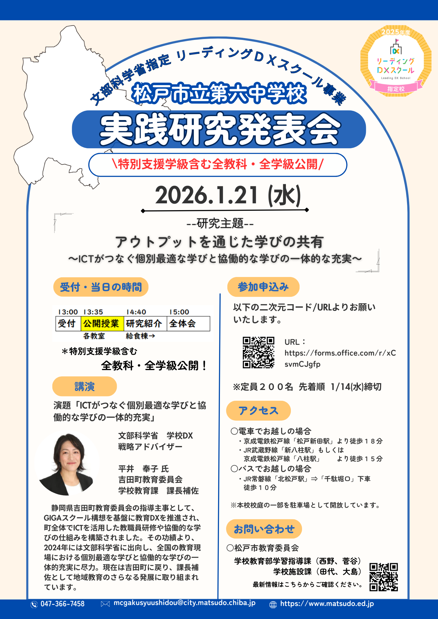 【松戸市】第六中学校 令和7年度 全国公開実践研究発表会