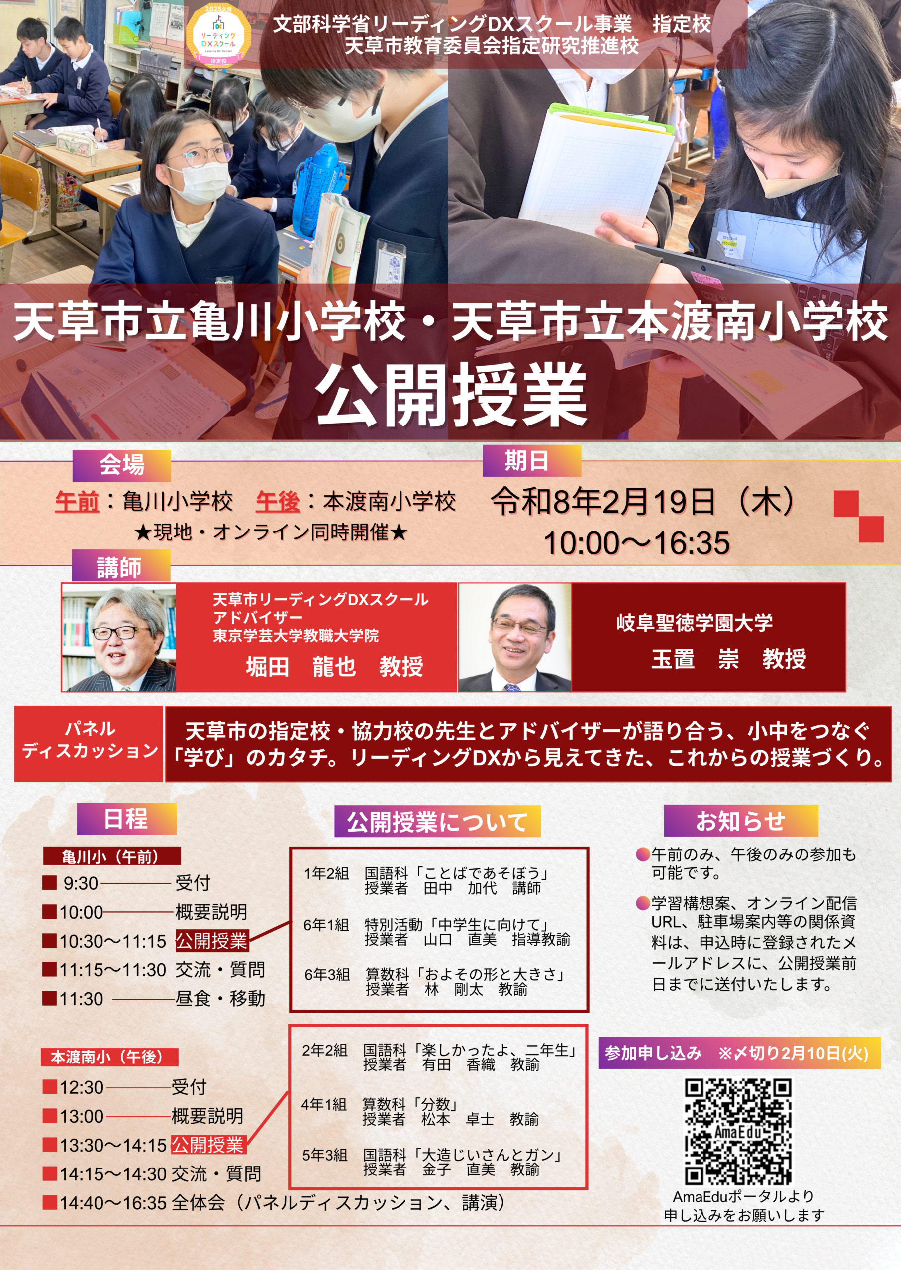 3. 熊本県天草市公開授業(2/19亀川小・本渡南小)のご案内【講師:東京学芸大学大学院・堀田龍也教授、岐阜聖徳学園大学・玉置崇教授】