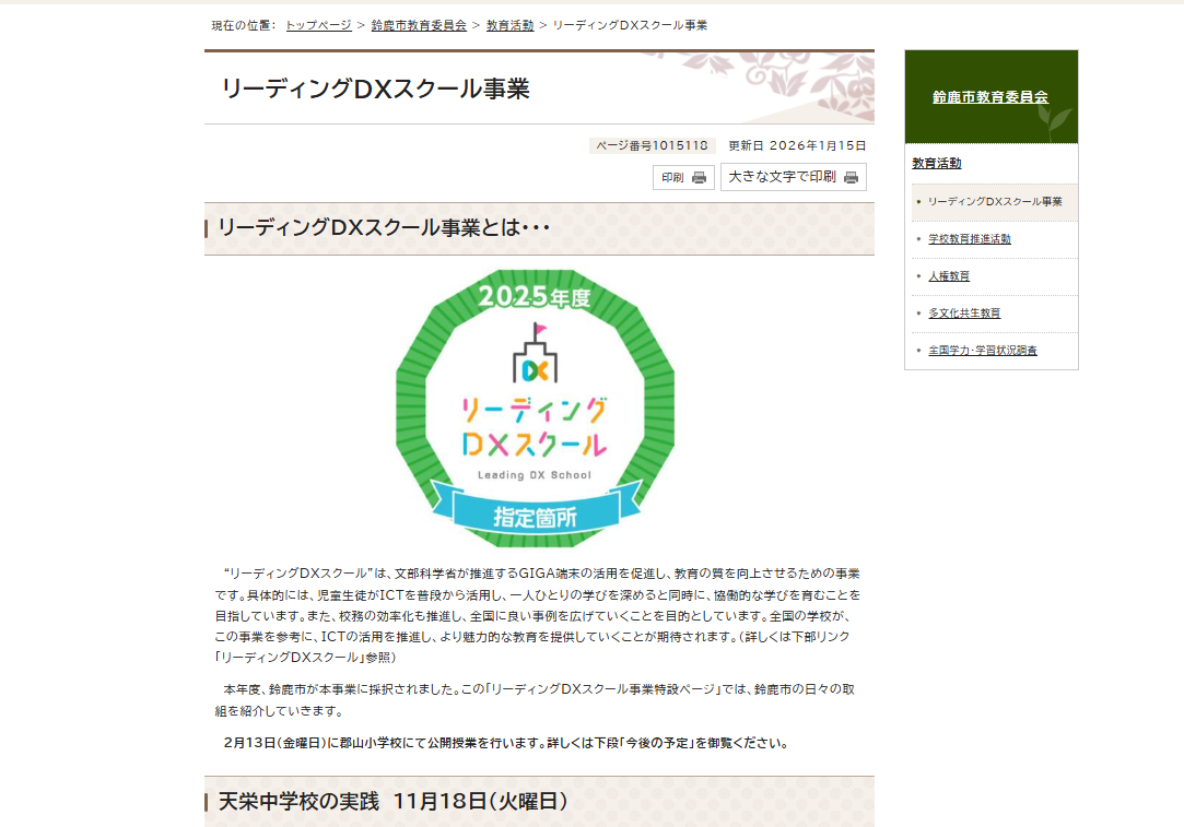 鈴鹿市教育委員会 リーディングDX特設ページ