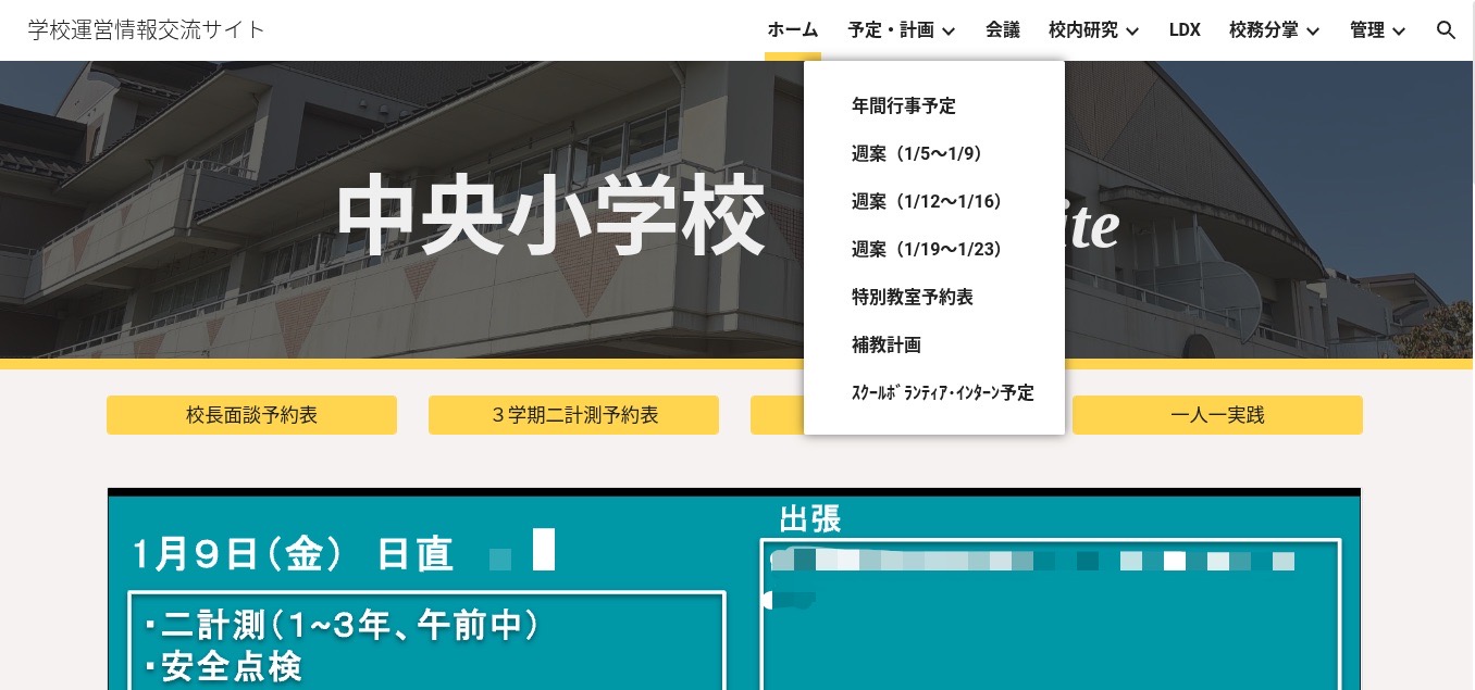 本校では、令和7年9月末の端末入替えを機に、学校運営に欠かせない情報のあり方を見つめ直しました。これまでは、紙媒体やホワイトボードによるアナログな管理が中心で、資料修正の手間や特別教室予約確認のための職員室への往復など、無駄な作業や移動が教職員の負担となっていました。こうした課題を解決するために、Google サイトを活用した「学校ポータルサイト」を作成しました。このサイトは、学校運営に関する情報を一箇所に集約するクラウド上の職員室としての役割があります。サイト上では、日報や行事予定の共有、週案のデジタル化など、情報の見える化を進めています。さらに、特別教室の予約や個人懇談会の希望集計もすべてオンラインで完結できる仕組みを整えました。情報がいつでもどこでも最新の状態で共有されるようになったことで、情報共有の効率化が図られました。学校運営に関する最新の情報をクラウド上で把握できる環境は、校務の調整にかかる手間や認識の行き違いを防ぐ大きな助けとなりました。この取り組みによって生まれた時間を、子供たちと向き合う時間へとつなげています。